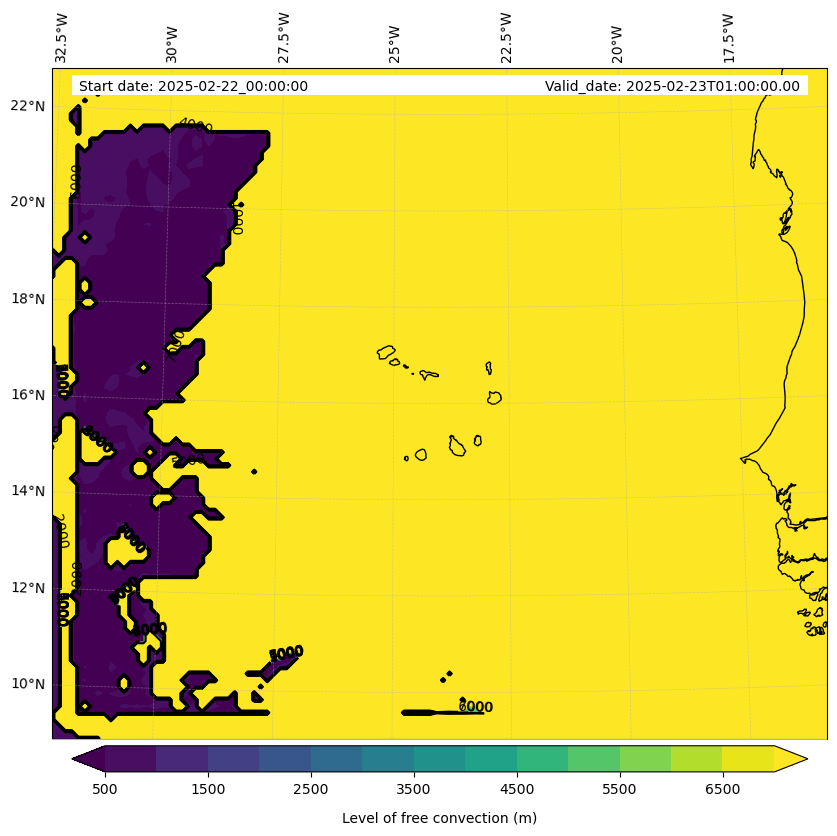 - Level of free convection (m)