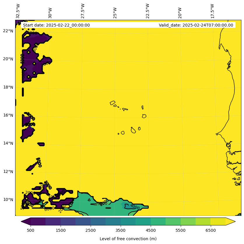 - Level of free convection (m)