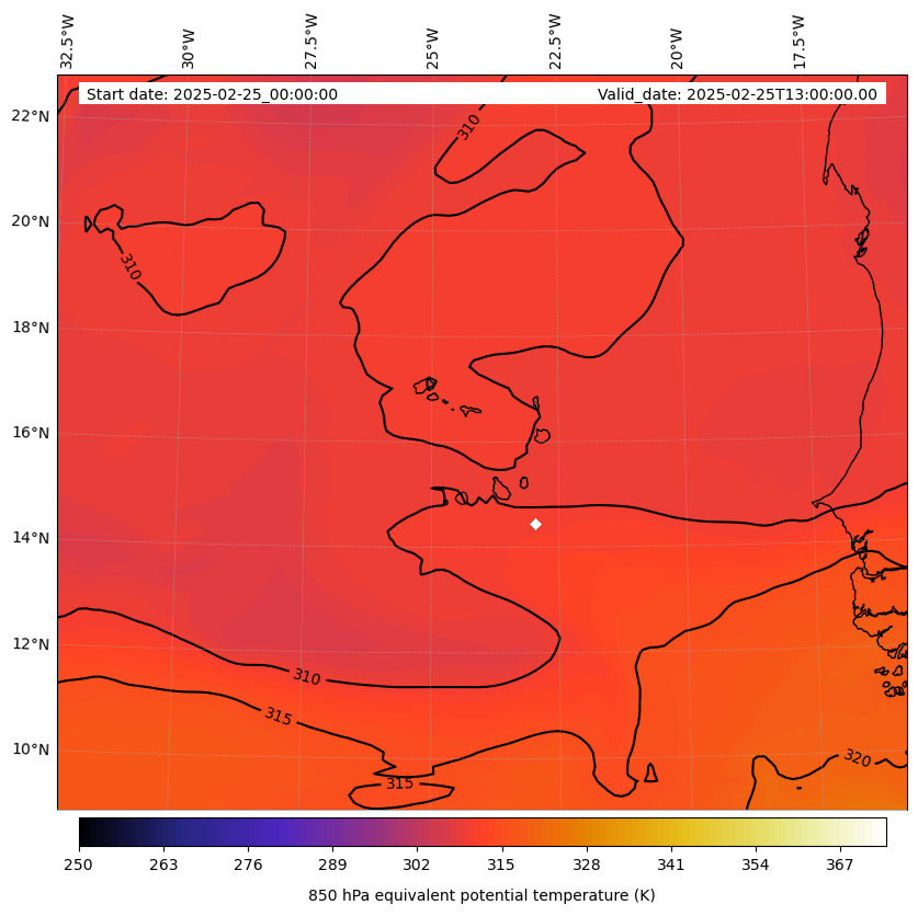 - Equivalent Potential Temperature (K)