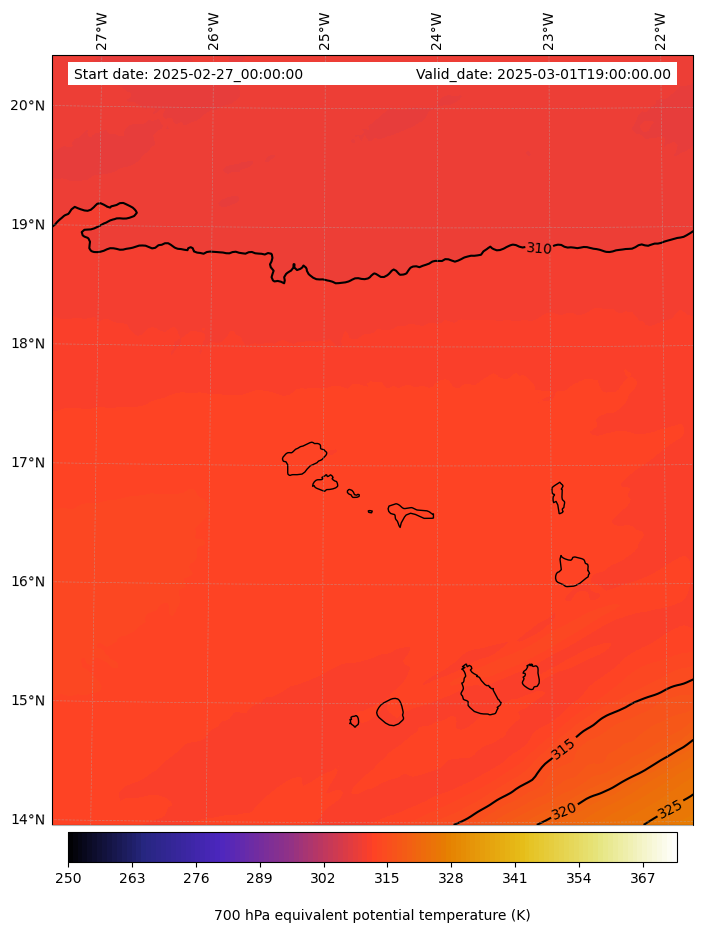 - Equivalent Potential Temperature (K)