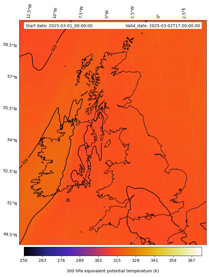 - Equivalent Potential Temperature (K)