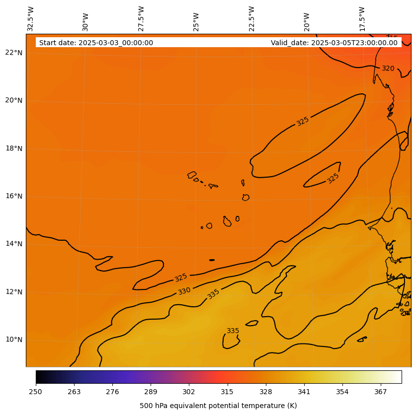 - Equivalent Potential Temperature (K)