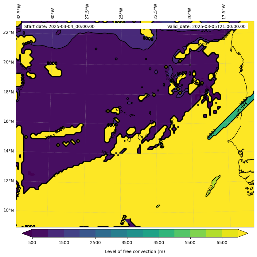 - Level of free convection (m)