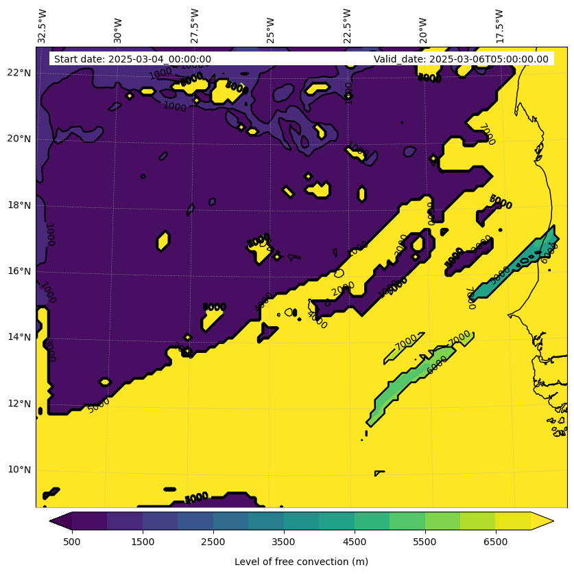 - Level of free convection (m)