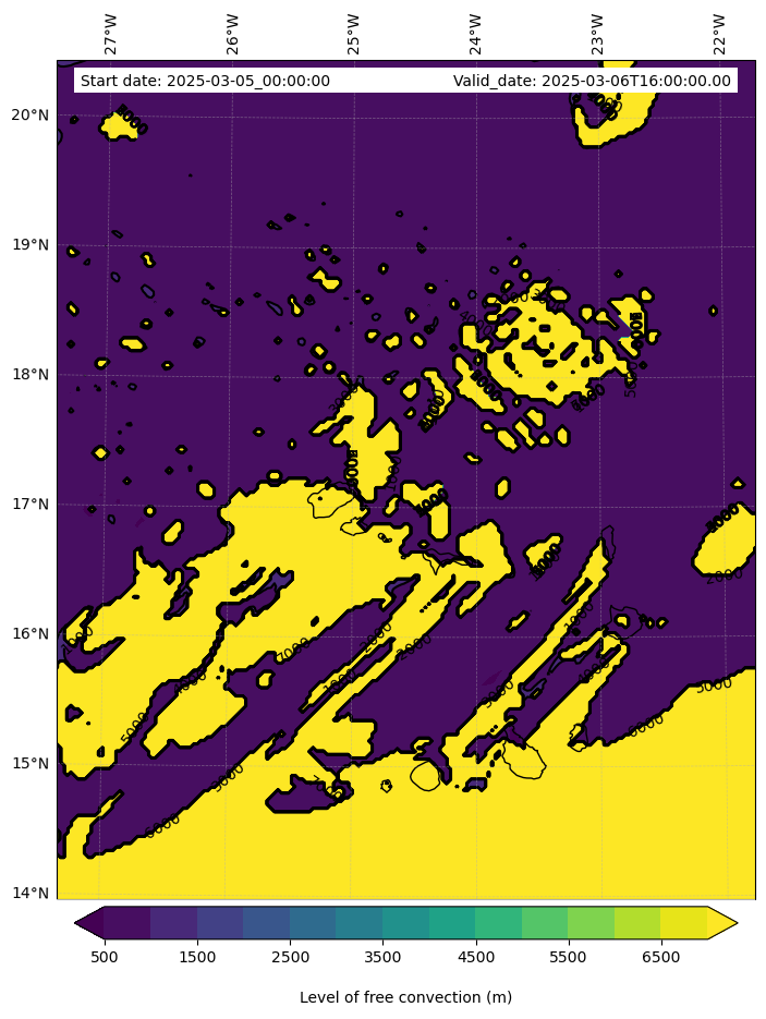 - Level of free convection (m)