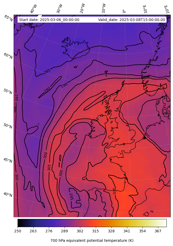 - Equivalent Potential Temperature (K)