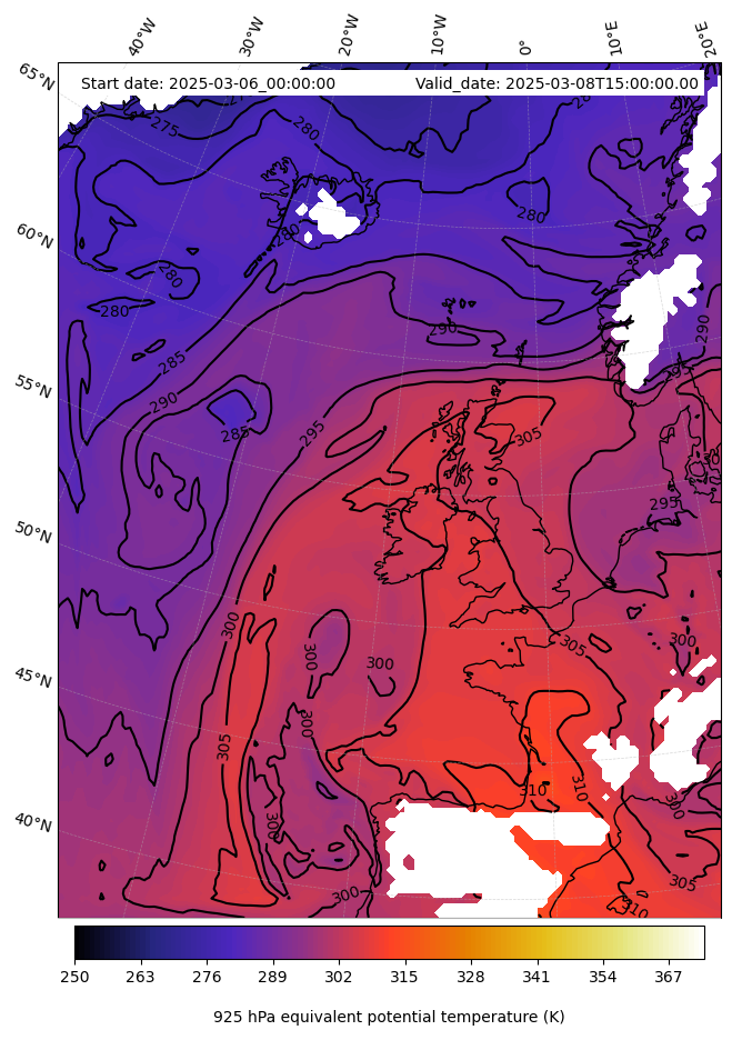 - Equivalent Potential Temperature (K)
