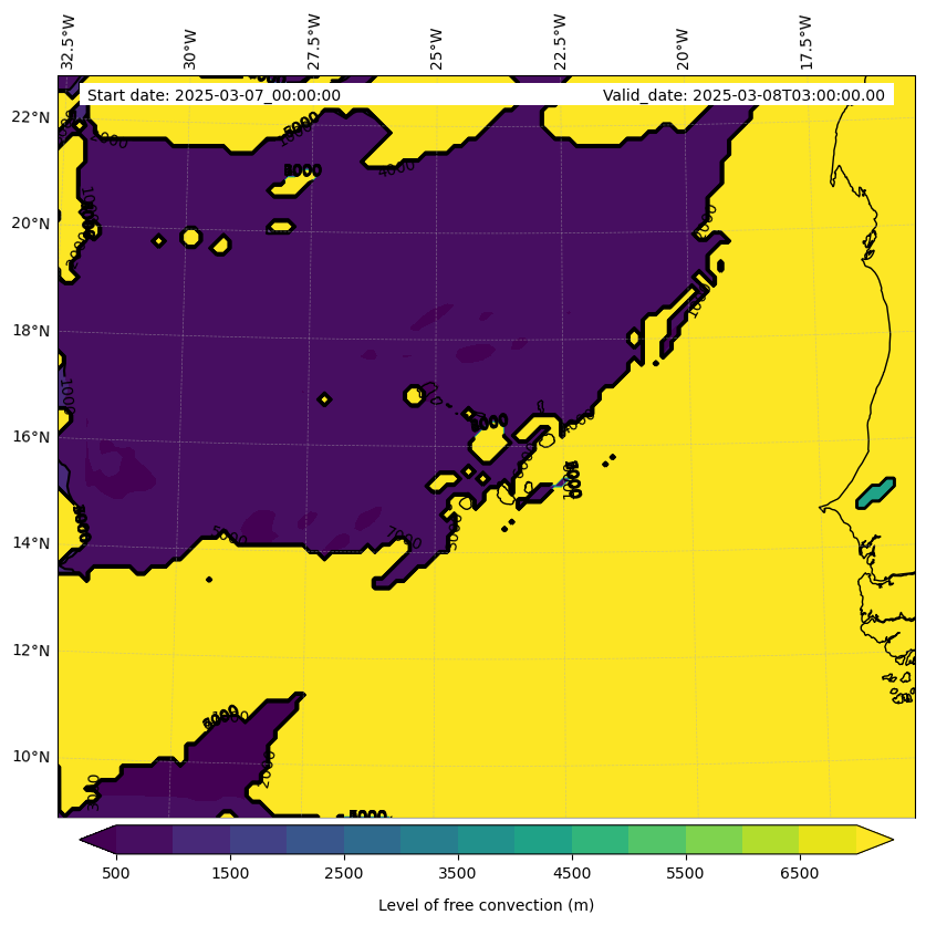 - Level of free convection (m)