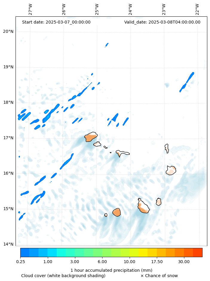 - Snow mixing ratio (g kg¯¹)