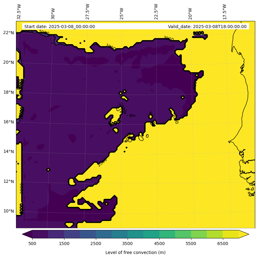 - Level of free convection (m)