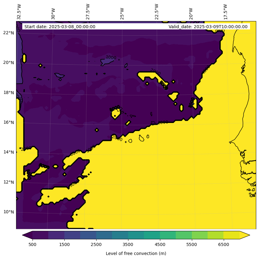 - Level of free convection (m)