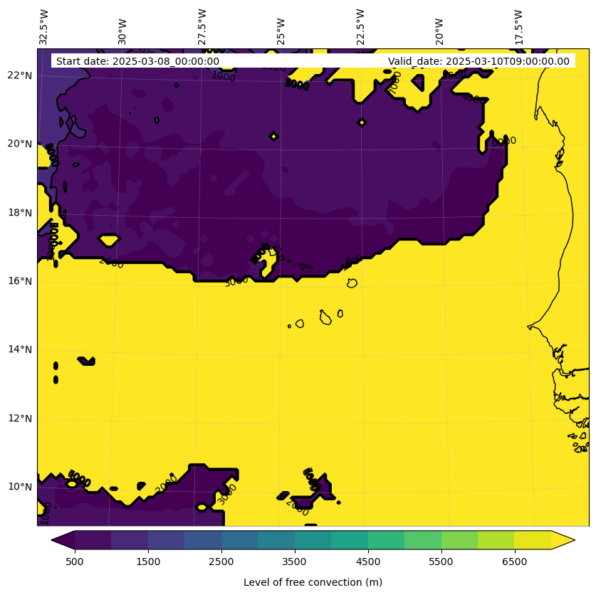 - Level of free convection (m)