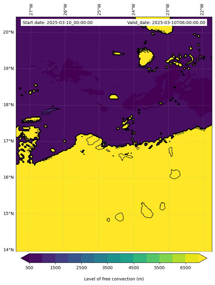 - Level of free convection (m)