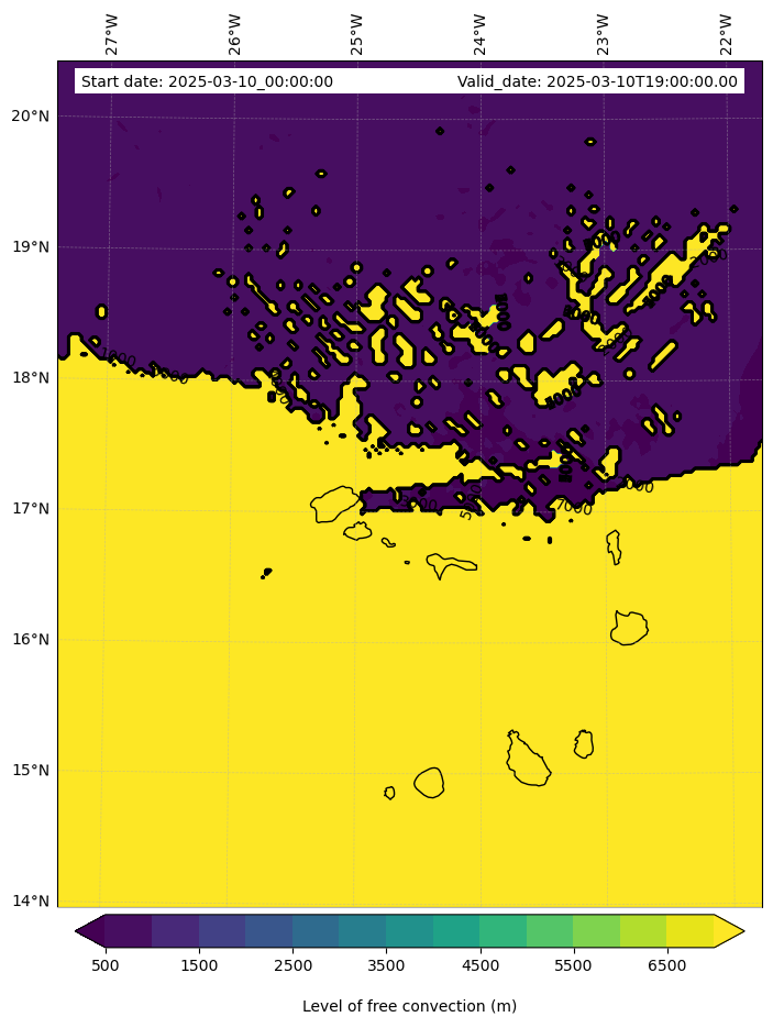 - Level of free convection (m)