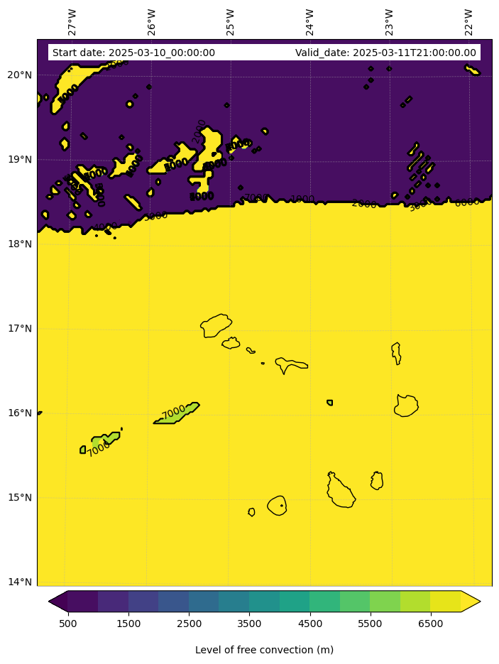 - Level of free convection (m)