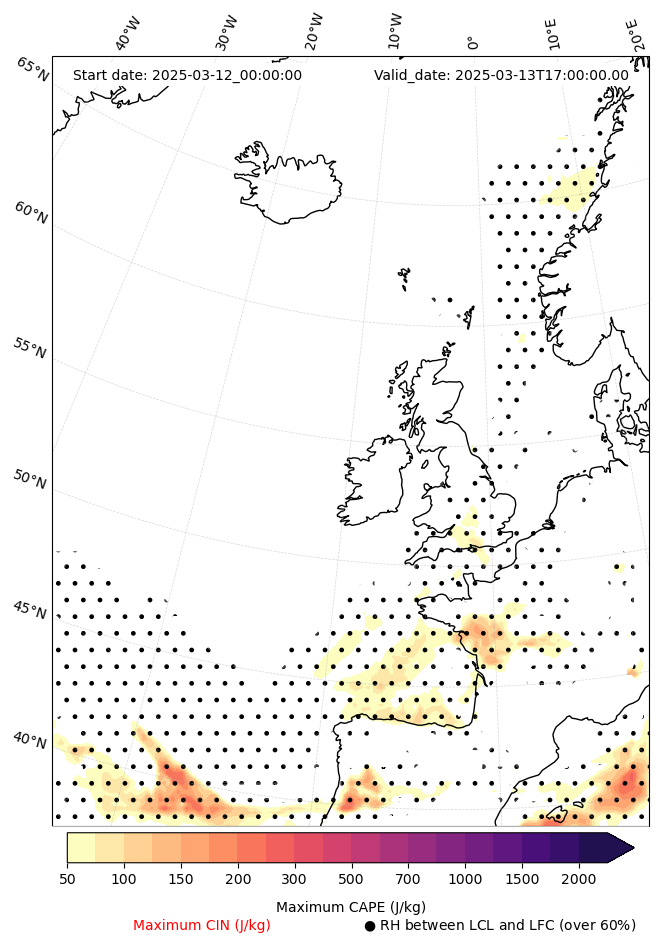 - Maximum CAPE (J/Kg)