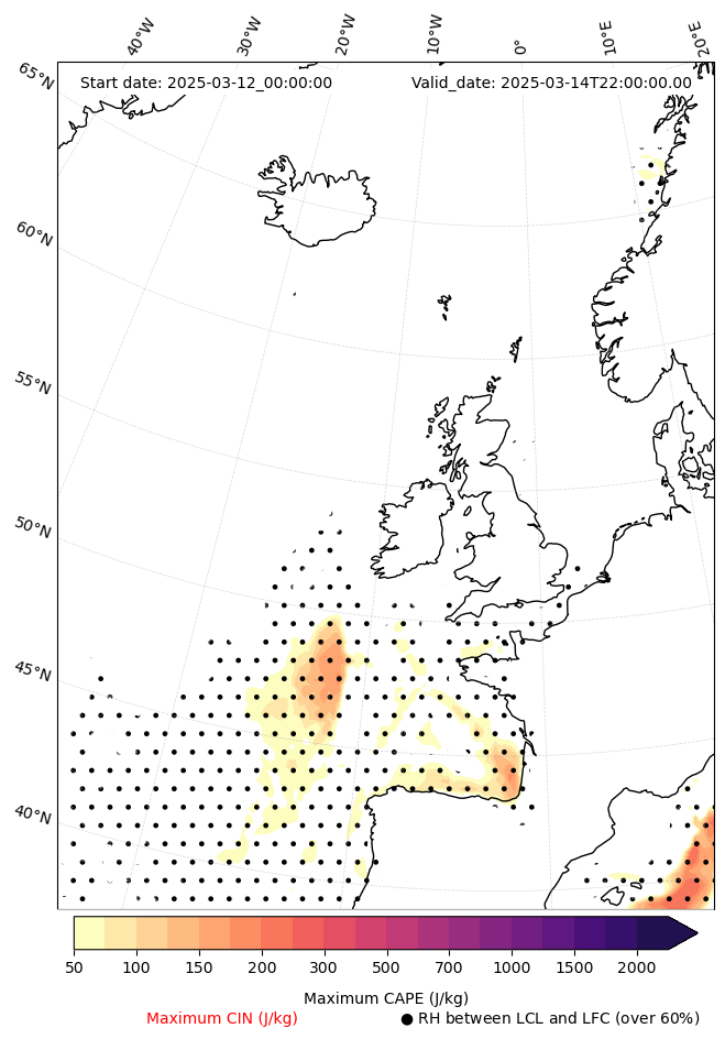 • Maximum CAPE (J/Kg)