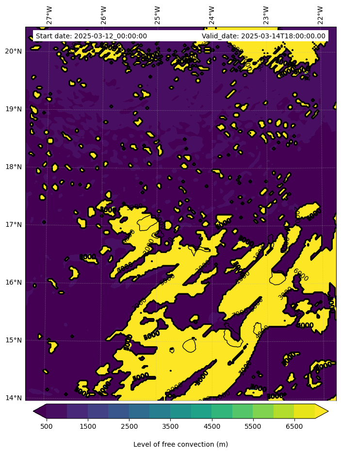 - Level of free convection (m)