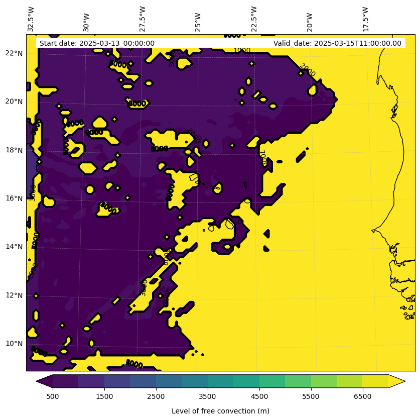 • Level of free convection (m)