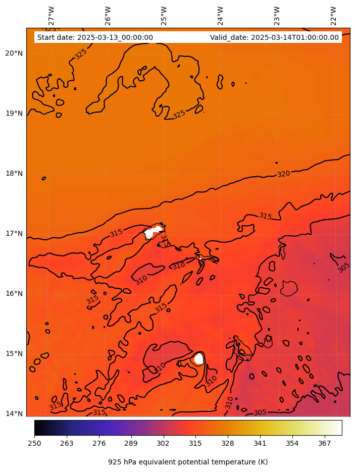 - Equivalent Potential Temperature (K)