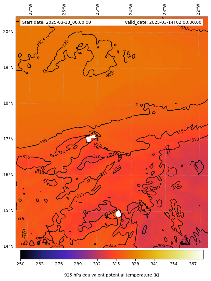 - Equivalent Potential Temperature (K)