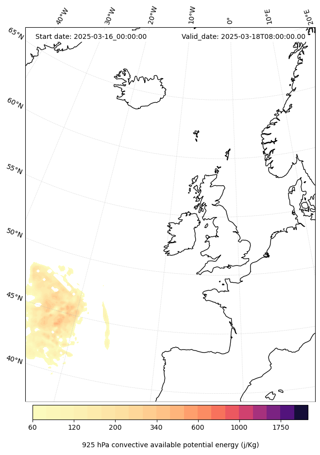 - Maximum CAPE (J/Kg)