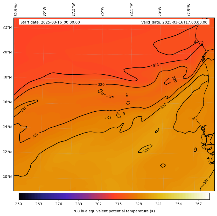 - Equivalent Potential Temperature (K)