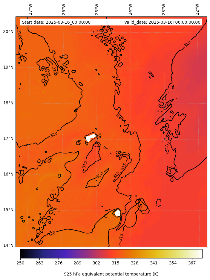 - Equivalent Potential Temperature (K)
