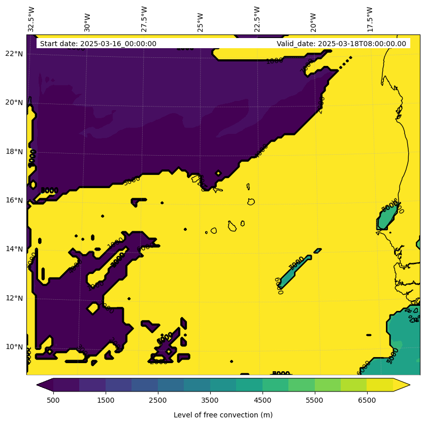 - Level of free convection (m)