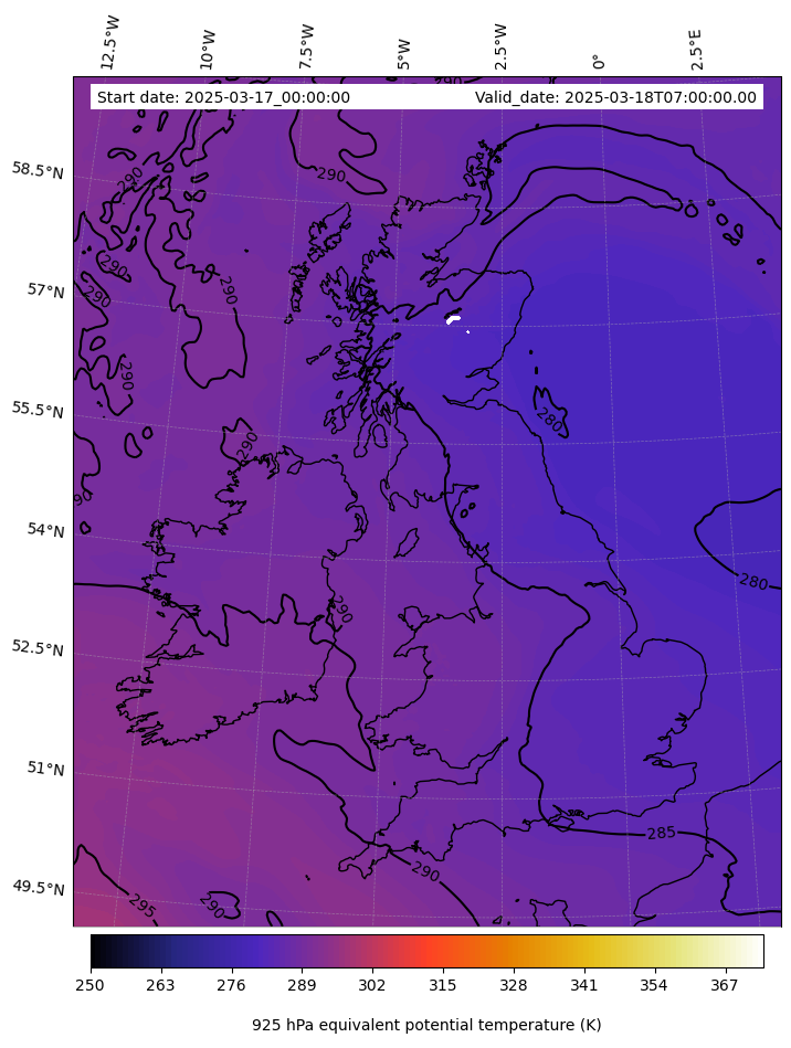 - Equivalent Potential Temperature (K)