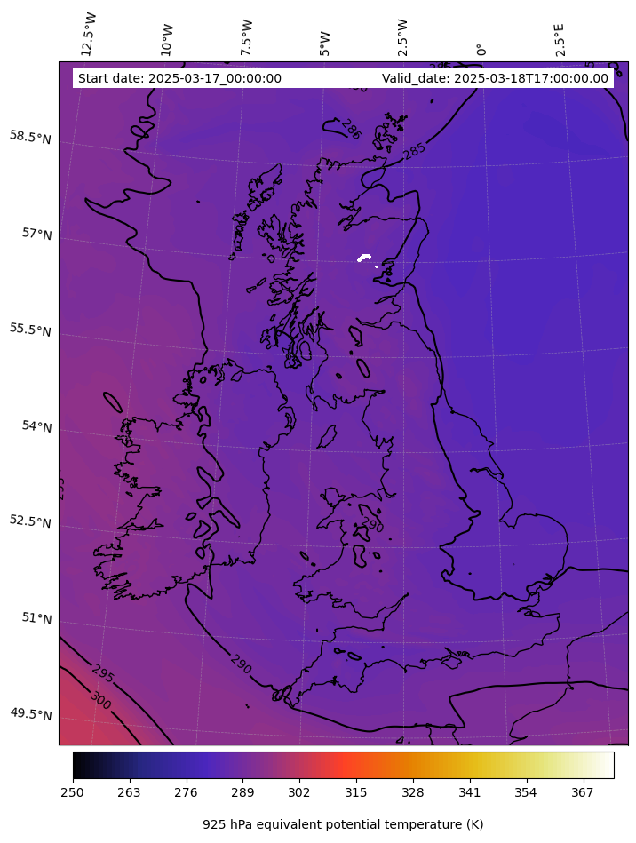 - Equivalent Potential Temperature (K)
