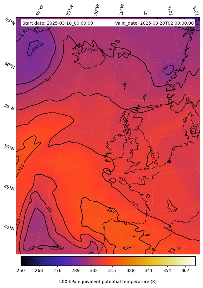 - Equivalent Potential Temperature (K)