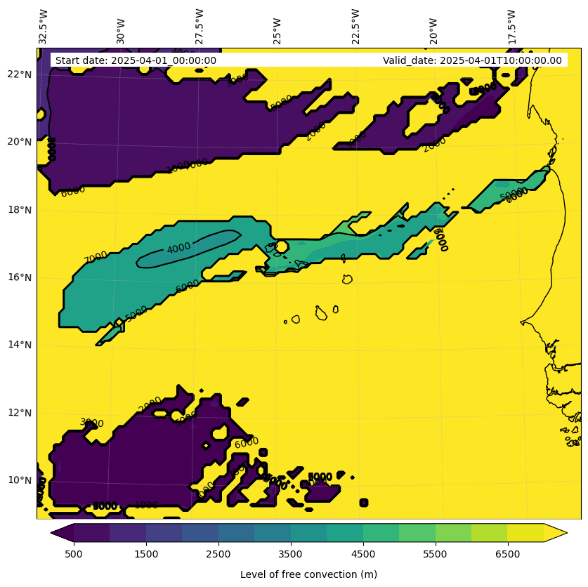 - Level of free convection (m)