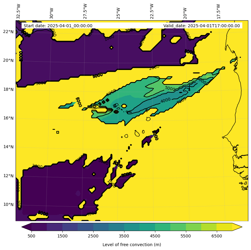 - Level of free convection (m)
