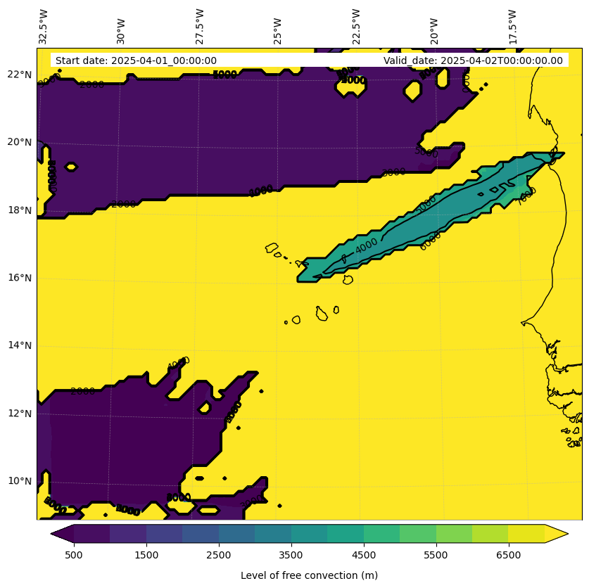 - Level of free convection (m)