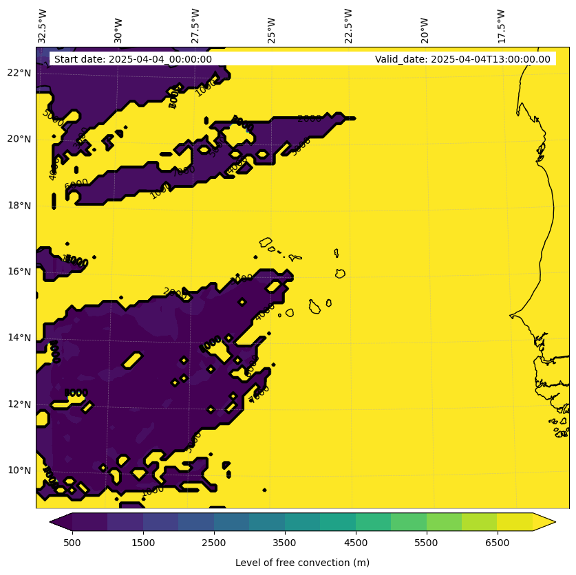 - Level of free convection (m)