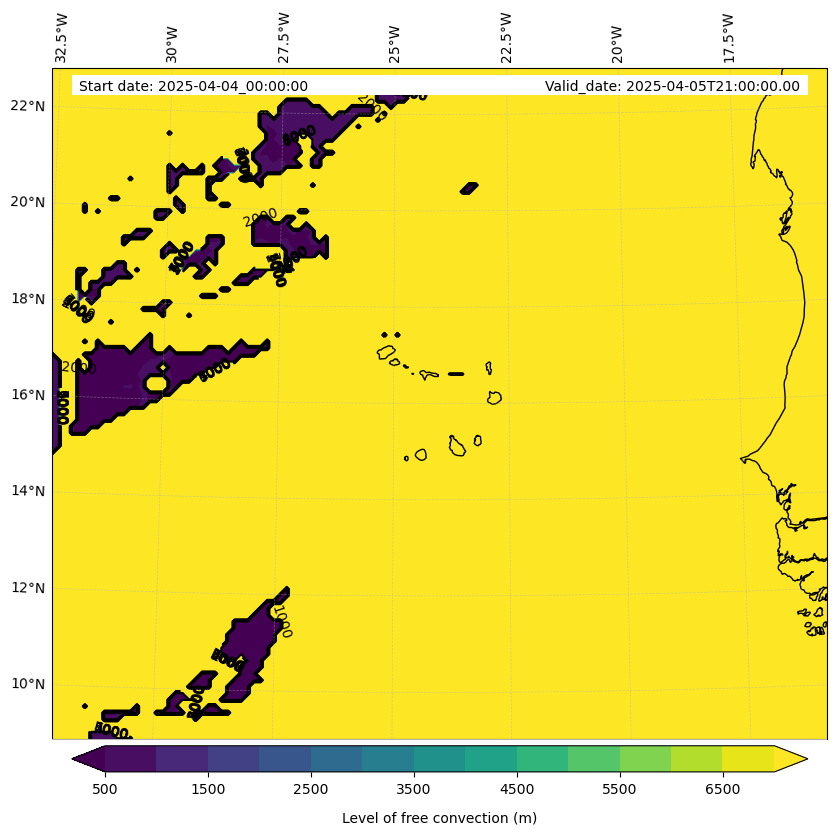 - Level of free convection (m)