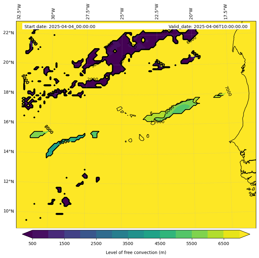 - Level of free convection (m)