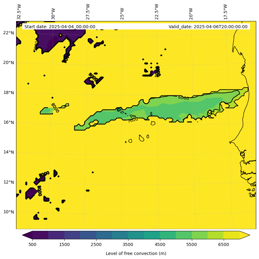 - Level of free convection (m)