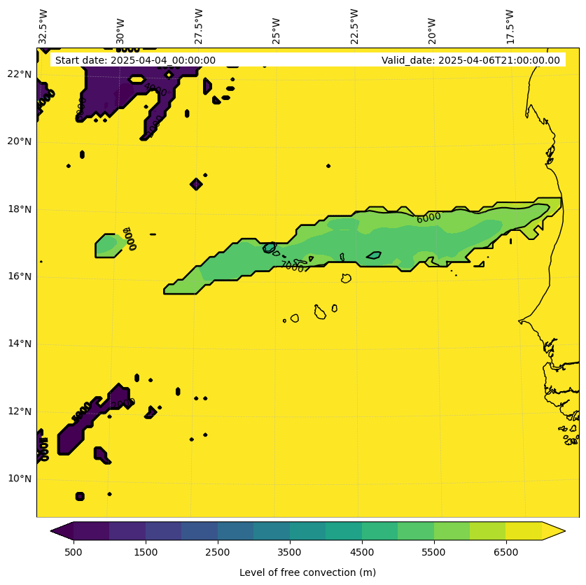 - Level of free convection (m)