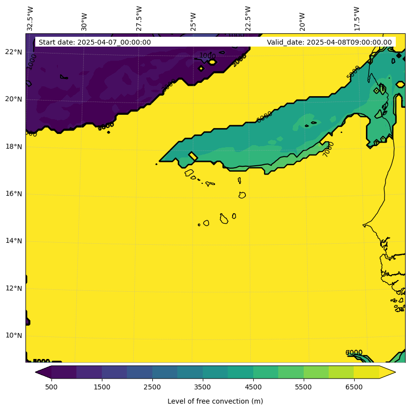 - Level of free convection (m)