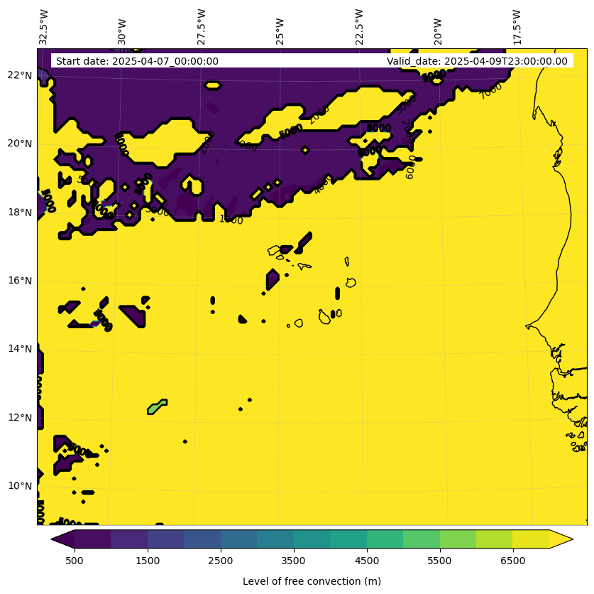 - Level of free convection (m)