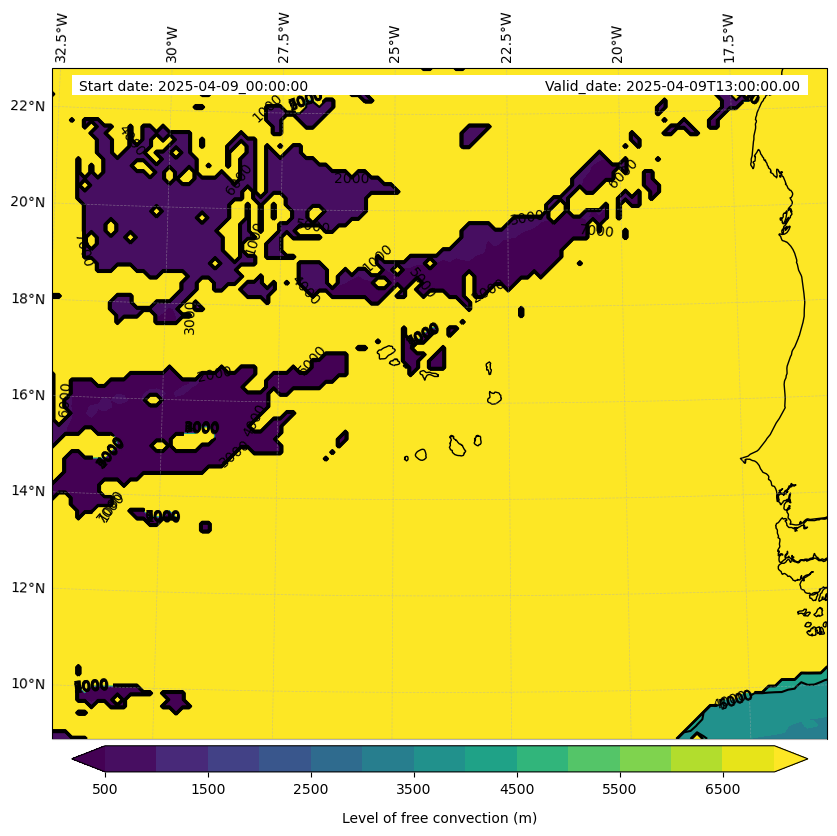 - Level of free convection (m)