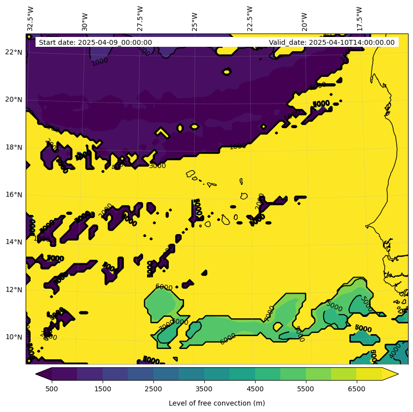 - Level of free convection (m)