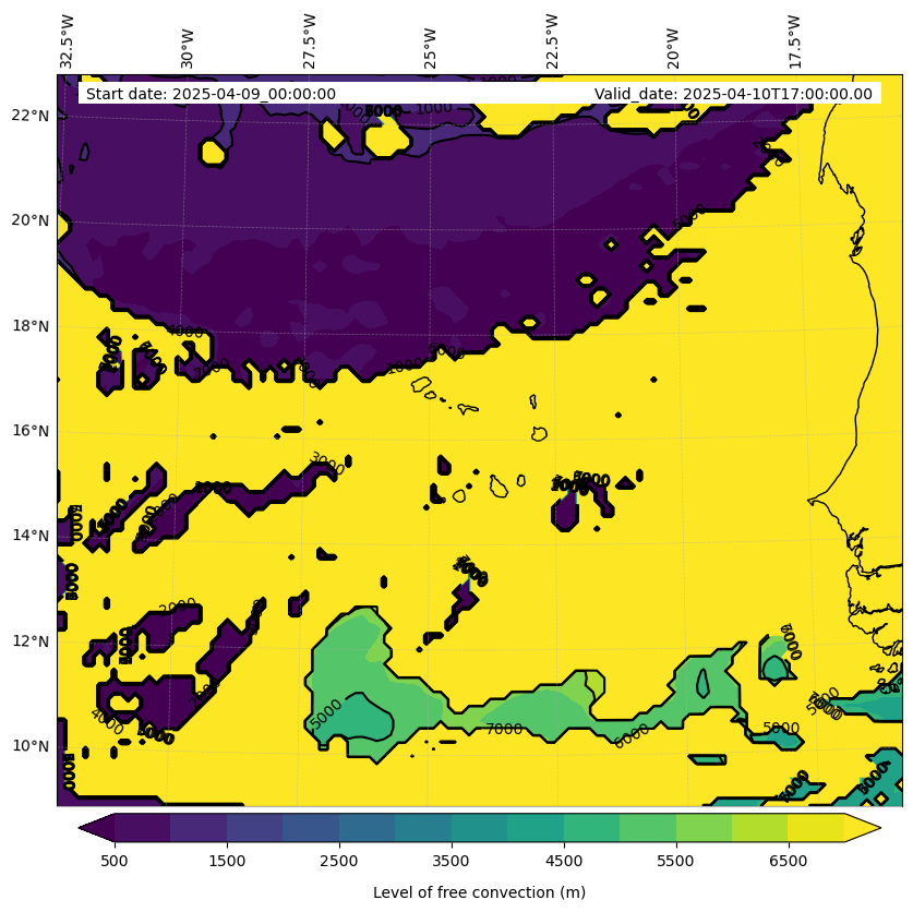 - Level of free convection (m)