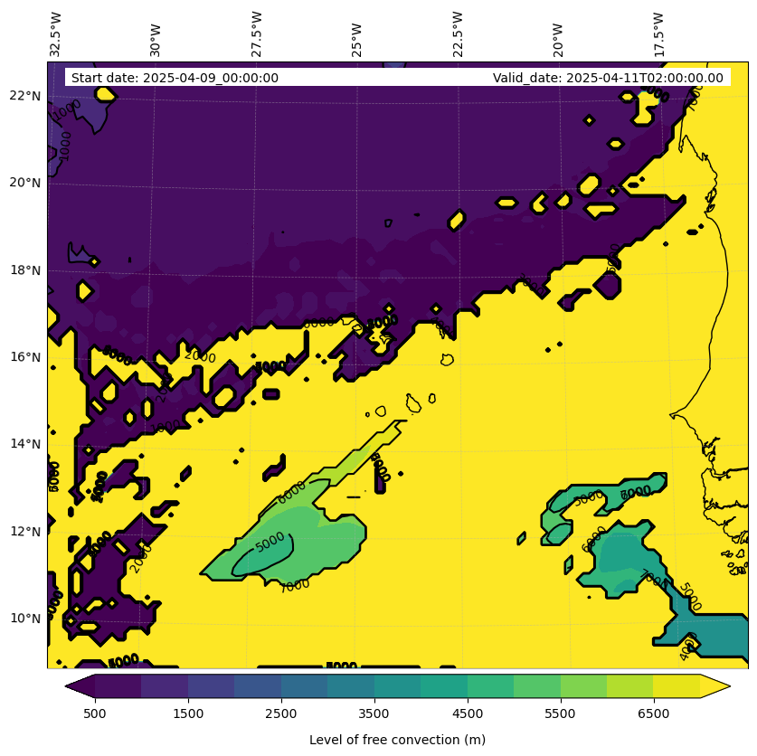 - Level of free convection (m)