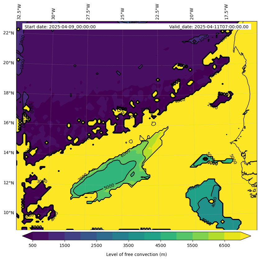 - Level of free convection (m)