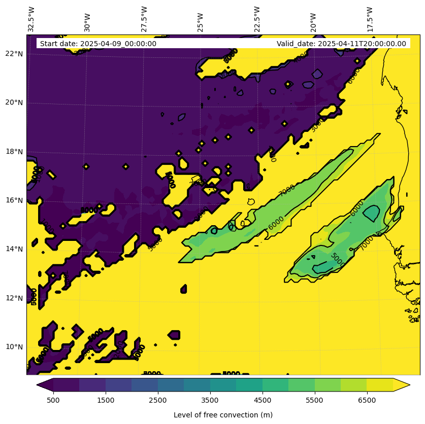 - Level of free convection (m)
