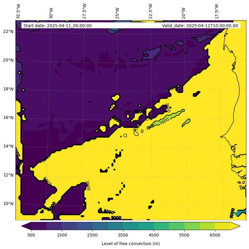 - Level of free convection (m)