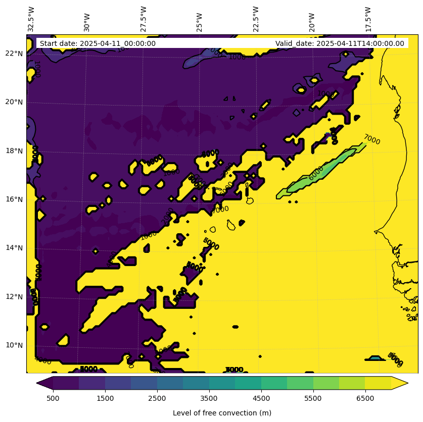 - Level of free convection (m)